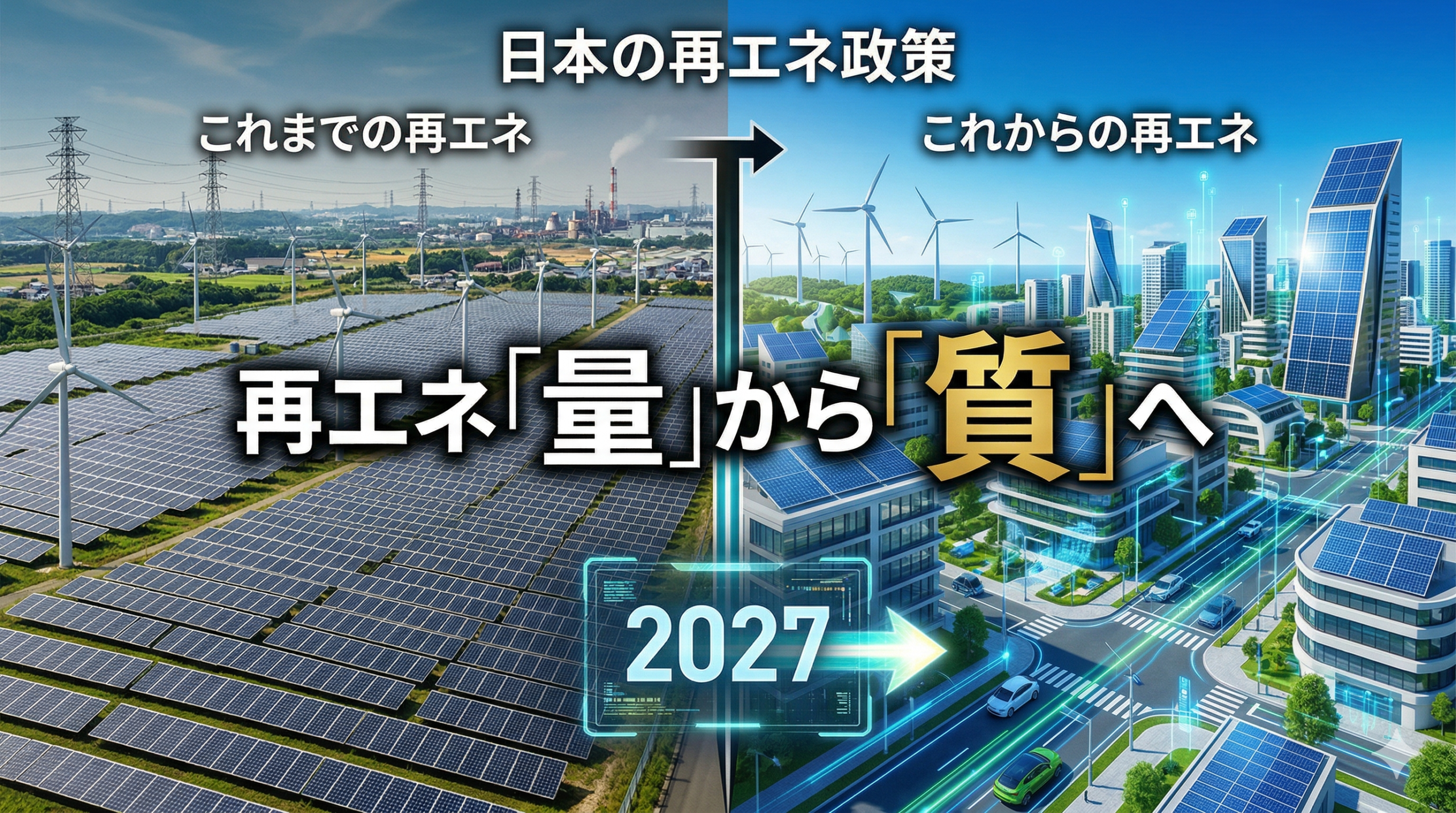 業界として特に注目すべき時間軸は「2027年度」です。2027年度より、出力1,000kW以上のメガソーラーは、市場価格に上乗せする支援制度(FIP等)の対象外となる方針です。